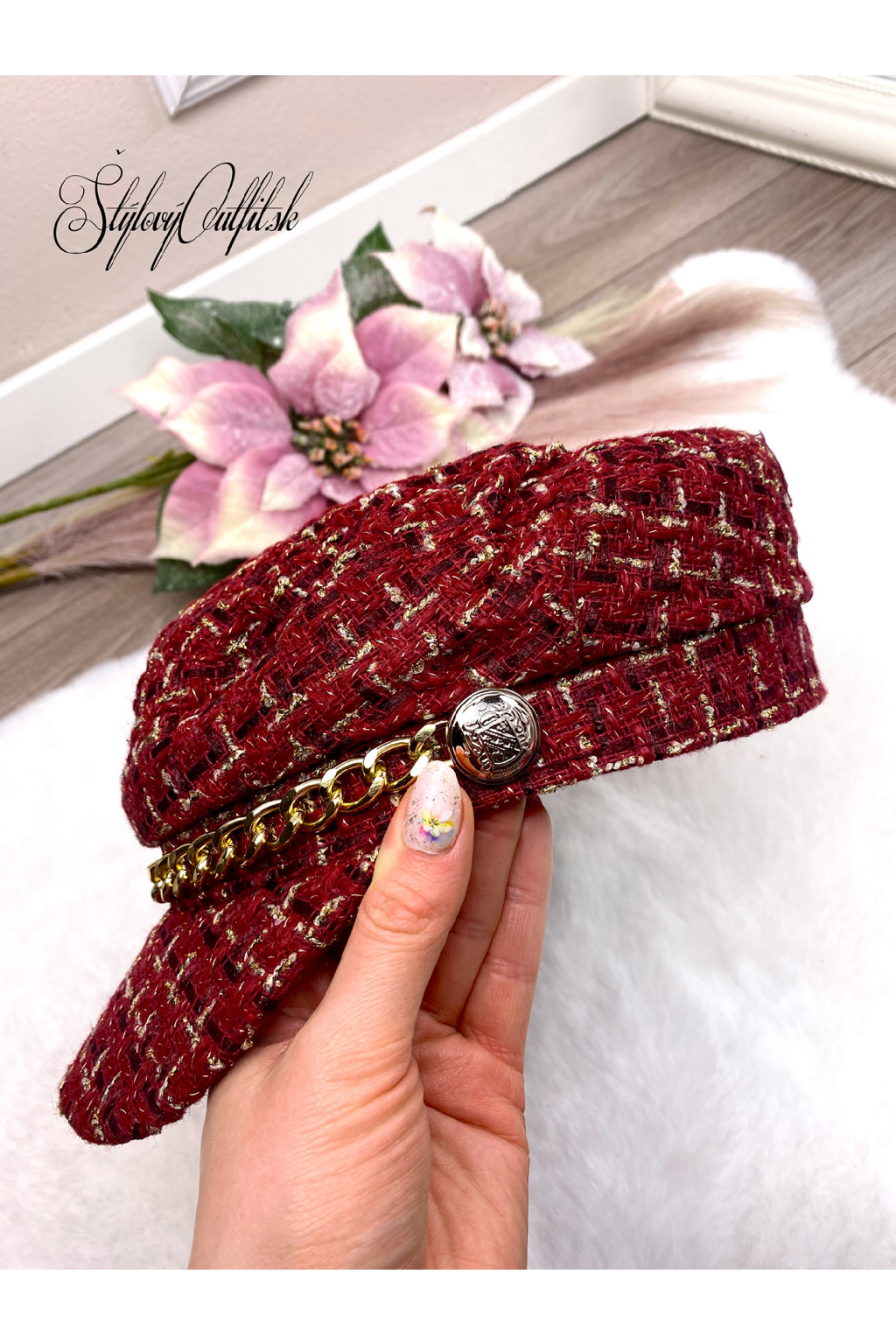Elegantná baretka krásnej farby, ktorej dizajn je doplnený kovovou retiazkou s dvomi zlatými aplikáciami. Nestarnúca klasika v krásnom ženskom prevedení, ktorá vyzerá skvele pri všetkých príležitostiach. Baretka má kvalitné šitie a materiál, ktorý je pevný a odolný. Obvod baretky sa dá nastaviť, vnútri baretky je aj šnúrka na stiahnutie. Originálny kúsok, ktorý perfektne doplní každý outfit :)