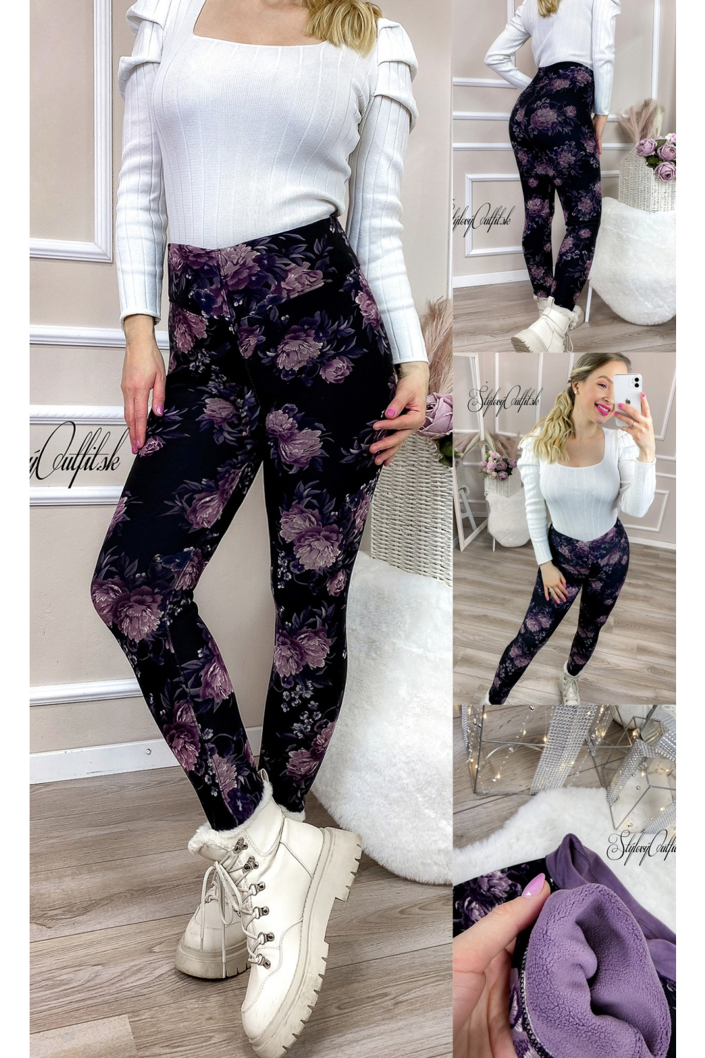 Kvalitné zateplené legíny BLESSED ❤ Purple Black