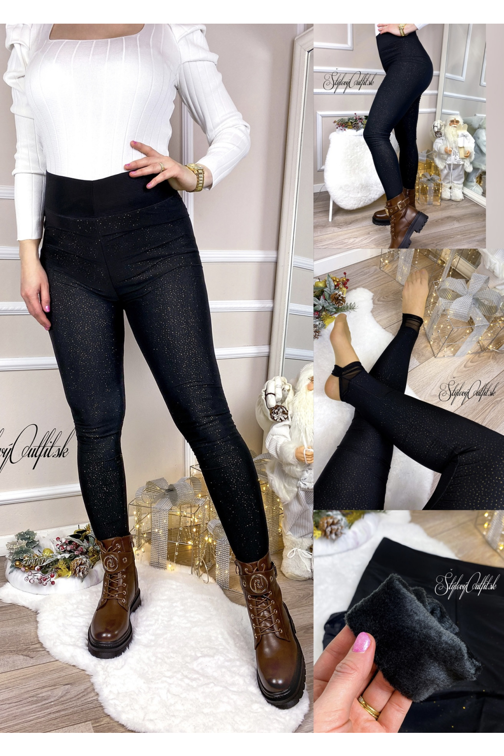 Hrejivé legíny so širšou jemnou elastickou gumkou v páse, ktorá je pohodlná a netlačí na brušku :) Ide o kaliopky, takže v zime krásne zahrejú a nevyťahujú sa hore. V spodnej časti sa nachádza prúžok na pätu, vďaka čomu legíny pekne držia svoj tvar aj v čižme. Legíny sú dvojvrstvové, sú podšité zateplenou vrstou s trblietkami, ktoré pripomínajú ligotavú nočnú oblohu. Vrchná vrstva je silonková/sieťková. Vo vnútri sú komplet zateplené. Sú vyrobené z príjemného elastického materiálu, vďaka čomu sú pekne prispôsobivé, poddajné a postavu krásne opticky zúžia. Ideálny kúsok na zimu pod rifle, nohavce, ale aj samostatne, keďže sú nepriesvitné a majú klasický legínový šev (nie punčoškový) :)