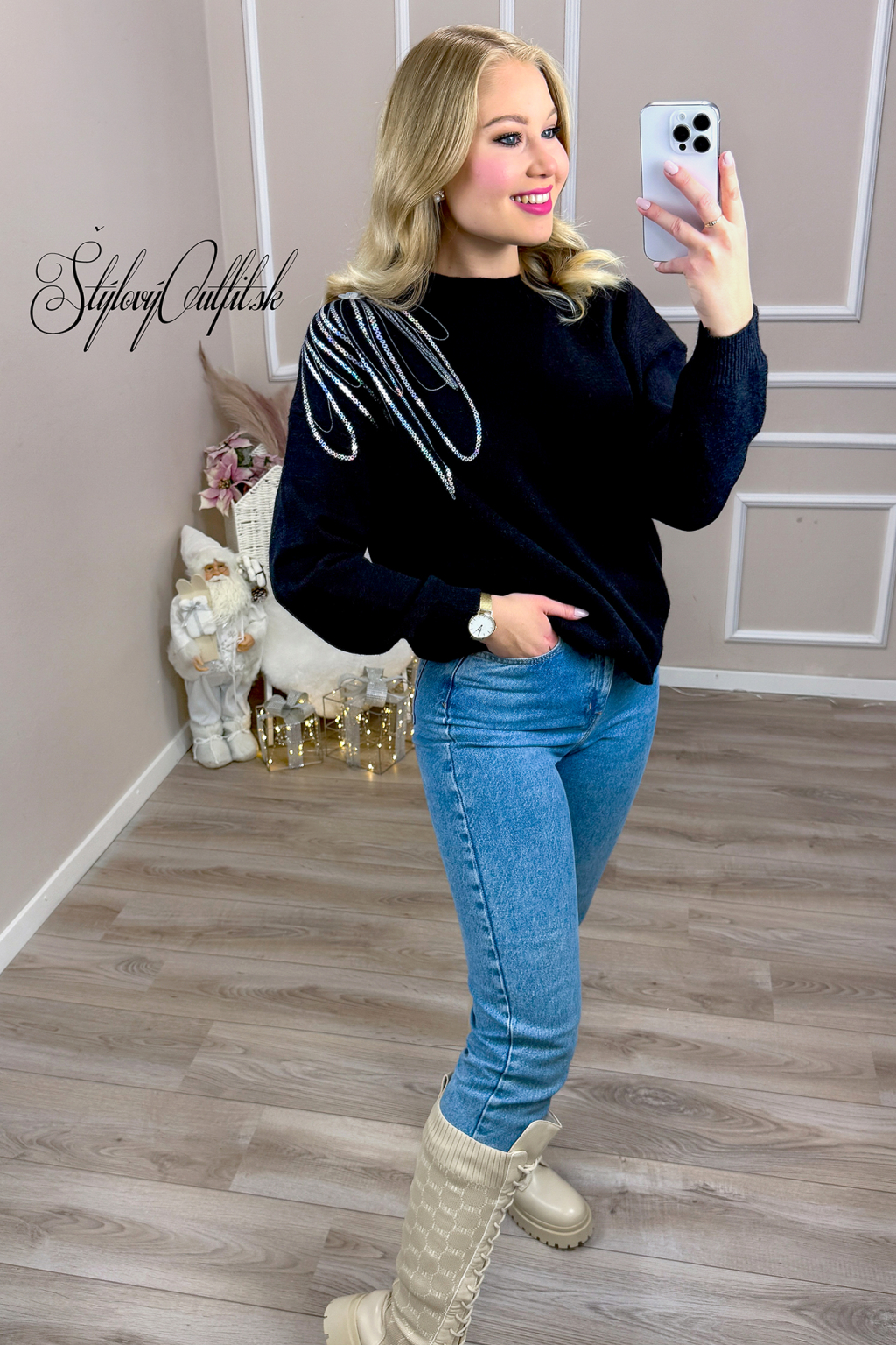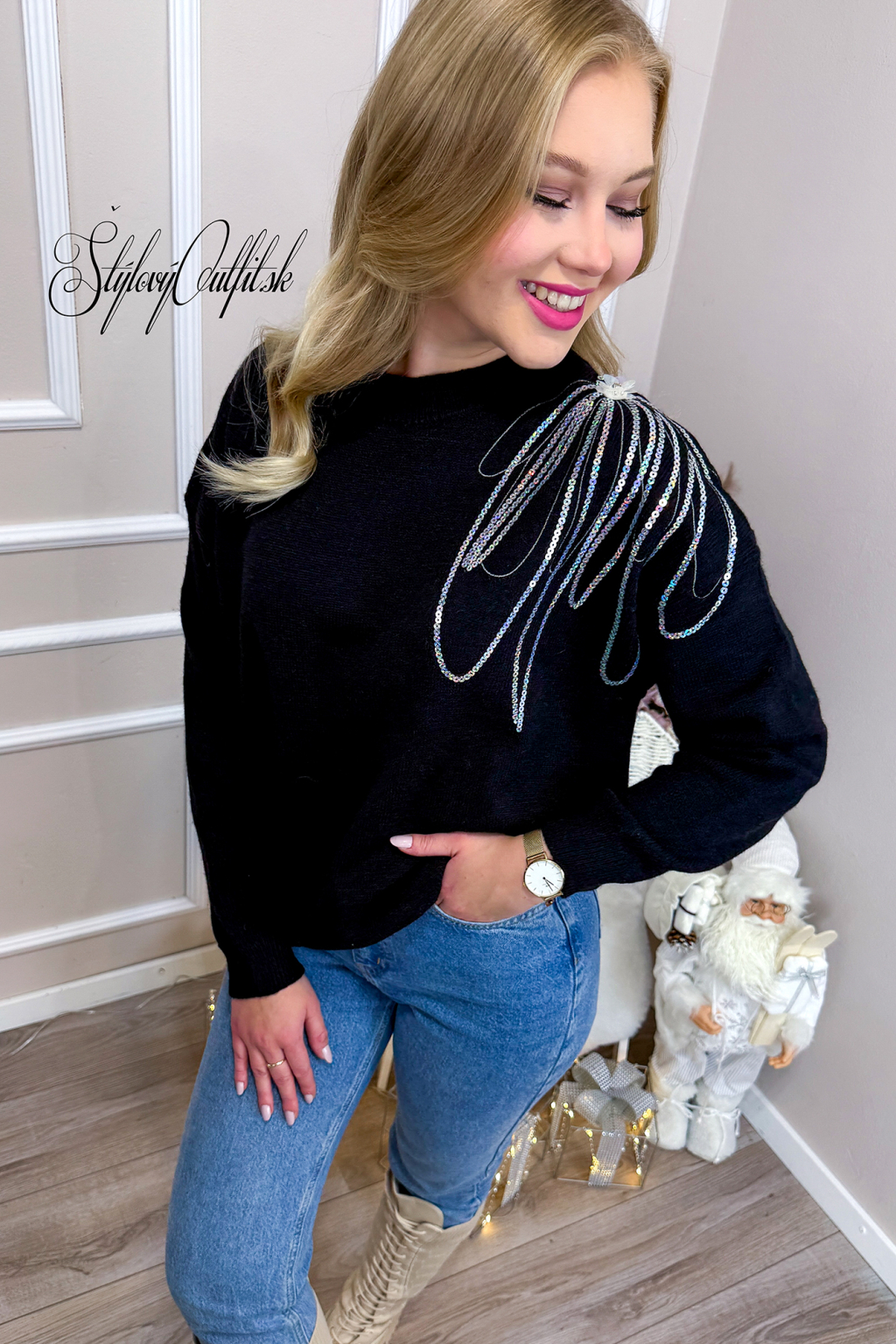 Hrejivý svetrík v hodvábnom štýle MON AMOUR ❤ Luxury Black
