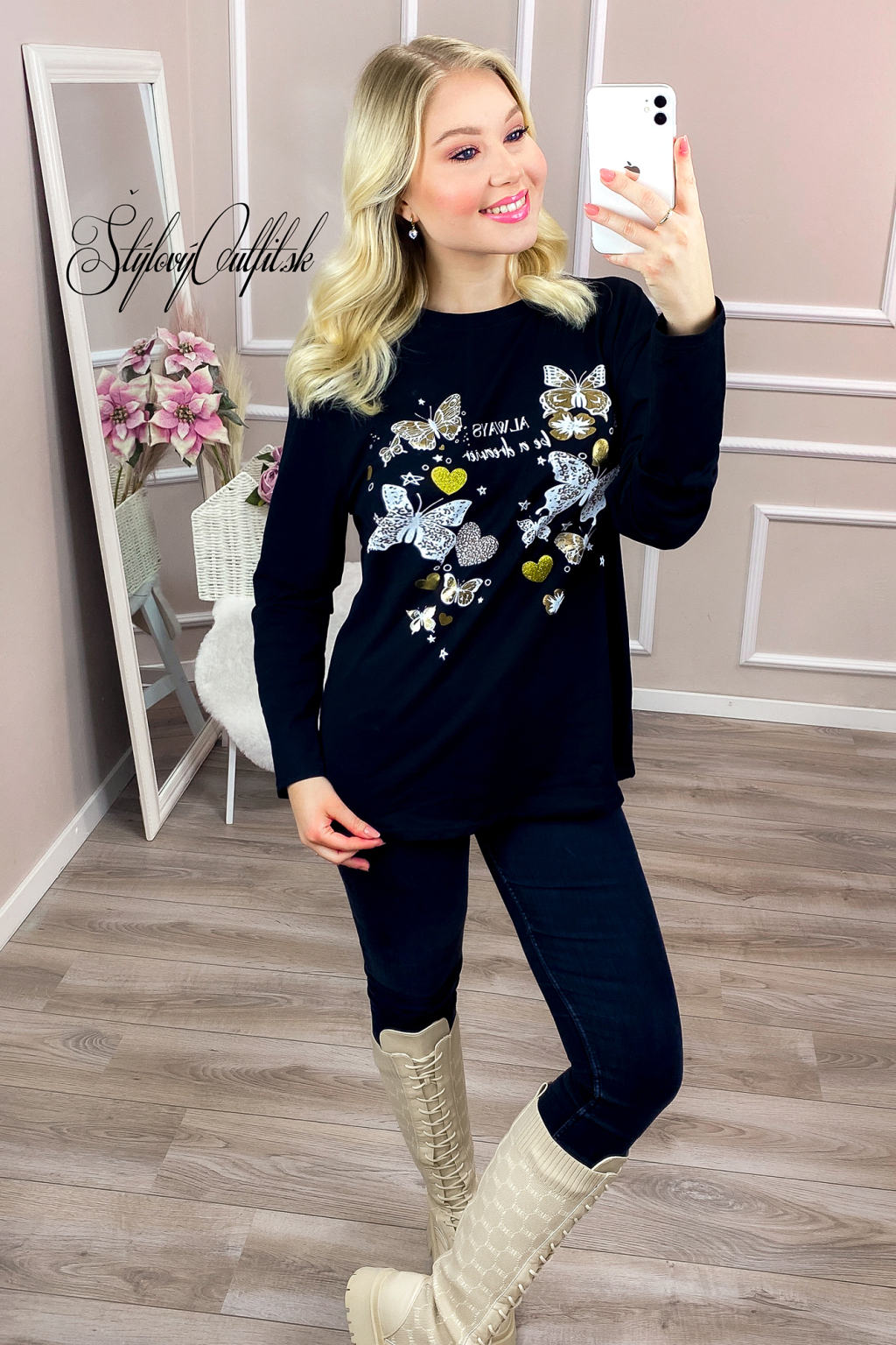 Bavlnená tunika v príjemnom voľnejšom strihu :) Materiál je prémiová elastická bavlna, čo je cítiť už pri prvom dotyku. Na tele je vďaka tomu nanajvýš pohodlné. Má voľnejší dlhší strih a neobťahuje, pekne zakryje bruško. Dizajn je doplnený zlatými prvkami, ktoré sa pri chôdzi ligocú a nápisom Dreamer. Topík je ideálnym jesenným a zimným kúskom, ktorý doplní zimný outfit :)